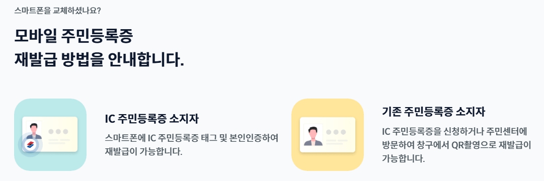 주민등록증 재발급을 통해 IC칩이 내장된 실물 주민등록증을 받은 경우, ‘모바일 신분증 앱’에서 휴대폰 뒷면에 태그해 발급을 완료할 수 있습니다. 이 경우 정부24를 통한 온라인 재발급 신청이 가능하며, 교부는 반드시 주민센터에서 수령해야 합니다.