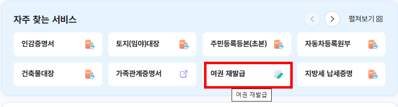 - 서비스 검색창에 ‘여권 재발급’ 입력