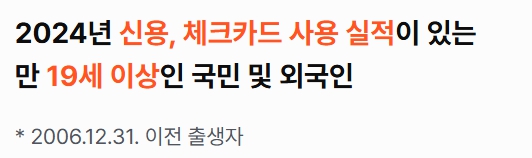 - 2024년에 본인 명의의 신용·체크카드 사용 실적 보유자