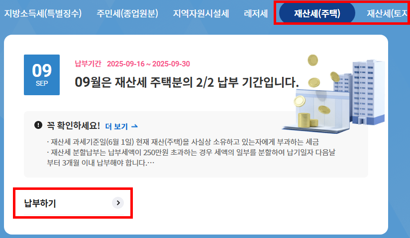 2025년 9월 재산세 납부기간과 기한