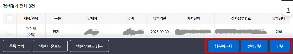 - 재산세 내역과 납부 가능 상태 확인 후 카드, 계좌이체 등으로 즉시 납부