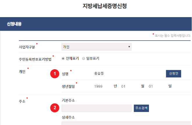- 메뉴에서 ‘민원증명’ → ‘지방세 납세증명서 발급’ 선택